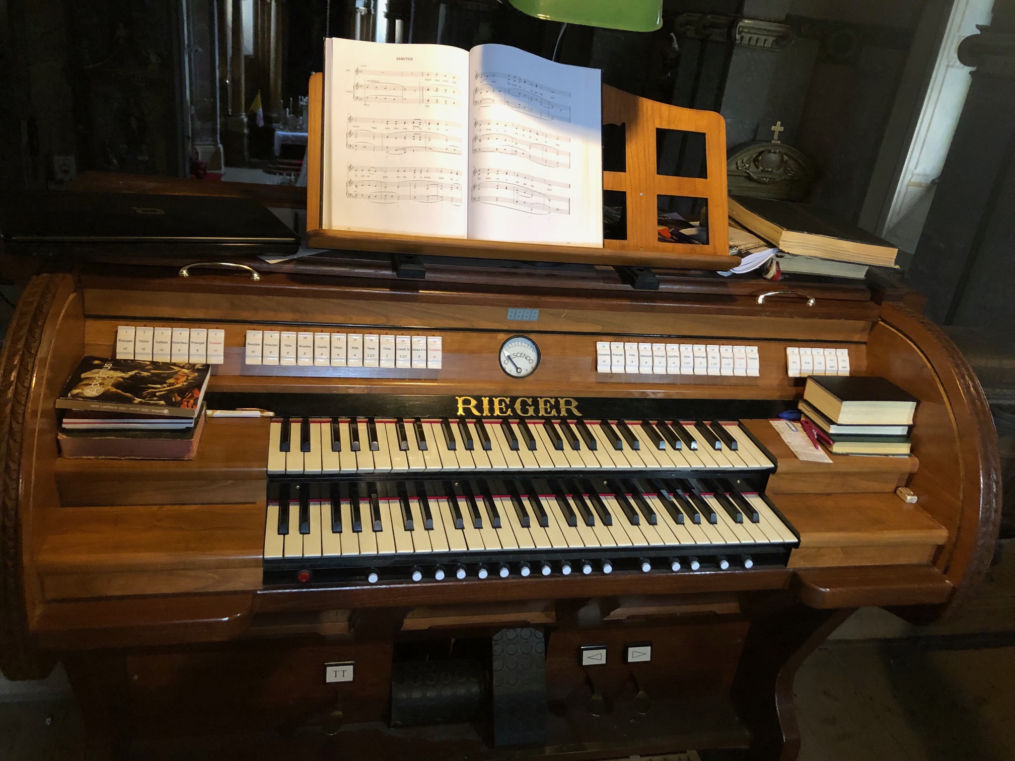 I+II: Az első és második manuál összekapcsolása. P+I: A pedál és az első manuál összekapcsolása. P+II: A pedál és a második manuál összekapcsolása.
