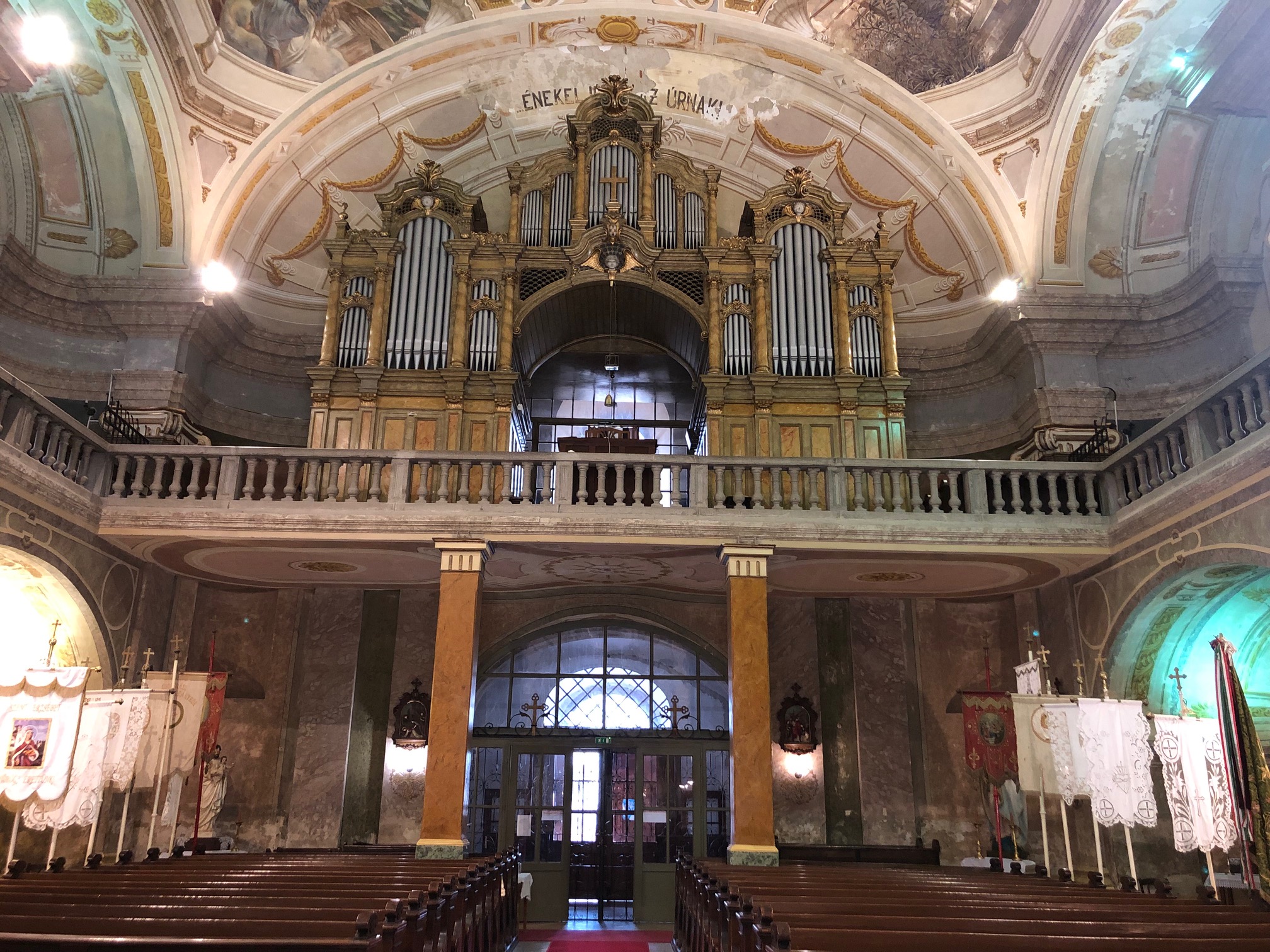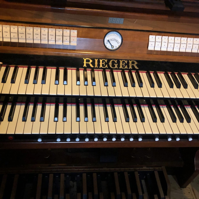 A jelenlegi hangszert 1910-ben építette a Rieger Ottó orgonagyár. Az orgona a karzat középpontjában helyezkedik el, és a templom egyik meghatározó díszítőelemeként is szolgál. Legutóbb 2023-ban esett át felújításon, melynek során jelentősen javult a hangszer műszaki és esztétikai állapota. Az orgona hangzása kiemelkedő szerepet játszik mind a liturgikus alkalmakon, mind az egyéb zenei eseményeken. Koncertezésre teljes mértékben alkalmas a fentebb említett funkcionális korlátozás figyelembevételével