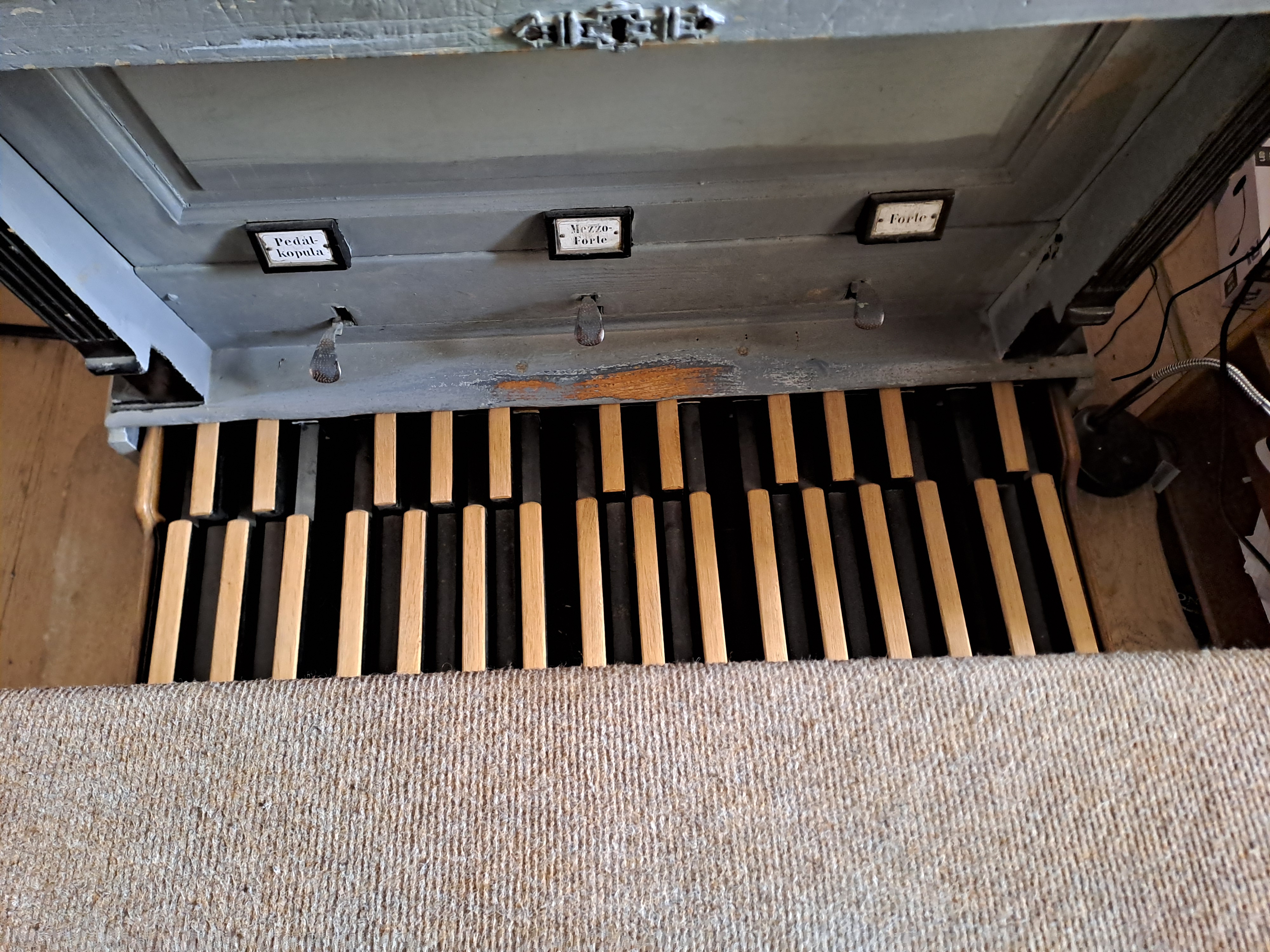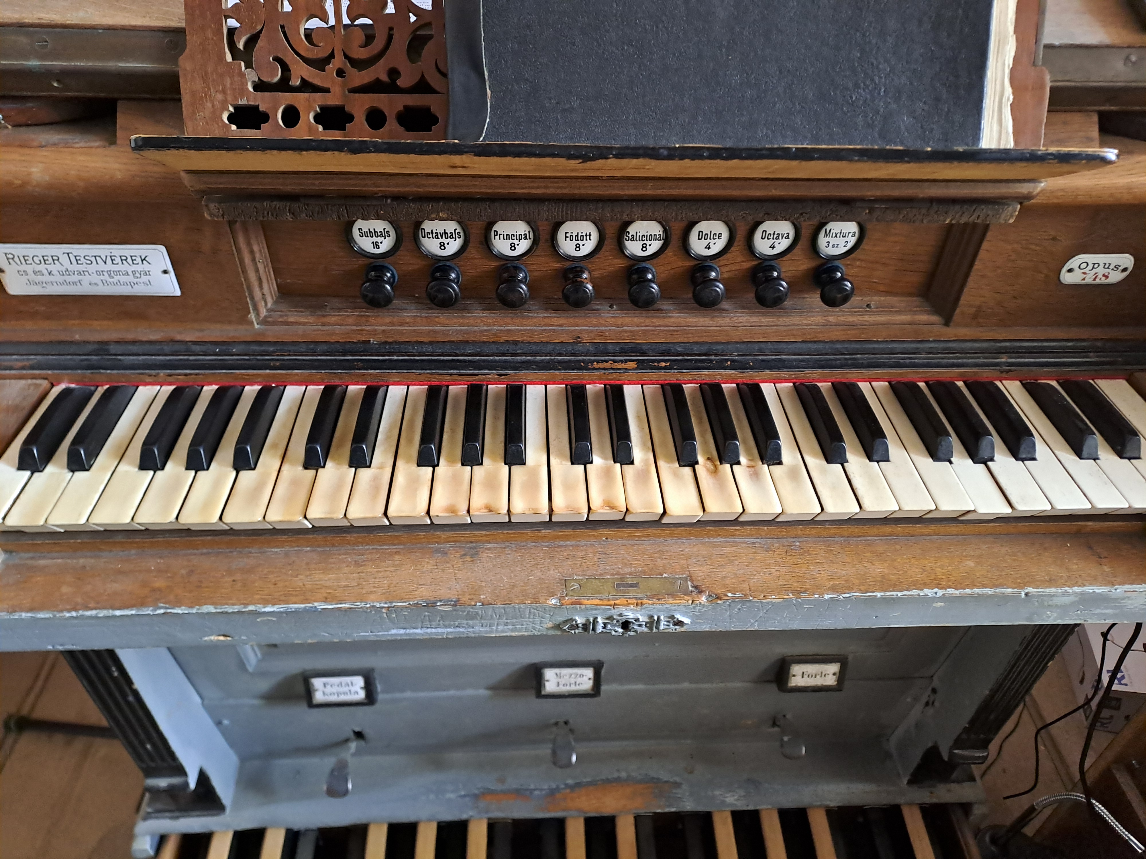 A hangszeren pedál kopula található.